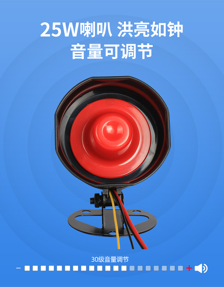 YX000L红黑喇叭语音提醒器可以通过预先录制的语音信息来向人们转达多种信息,,,,,,,如警报、通知、广告等。。。。。。。同时,,,,,,,它还可以通过外部信号触发来举行语音提醒,,,,,,,如报警信号、门禁信号等。。。。。。。该产品具有音量可调、音色清晰、音质优良、音量大、使用利便等特点,,,,,,,是一种适用的语音提醒装备。。。。。。。