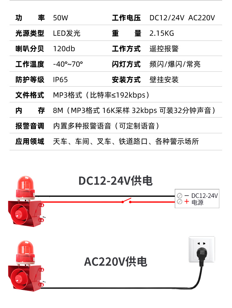 50W户外声光报警器433????????乜钤毒嗬肟刂撇ケǎ,,,,可AC220V/DC12-24V供电,,,,,自界说语音声光报警,,,,,灯光可设常亮,,,,,慢闪,,,,,爆闪