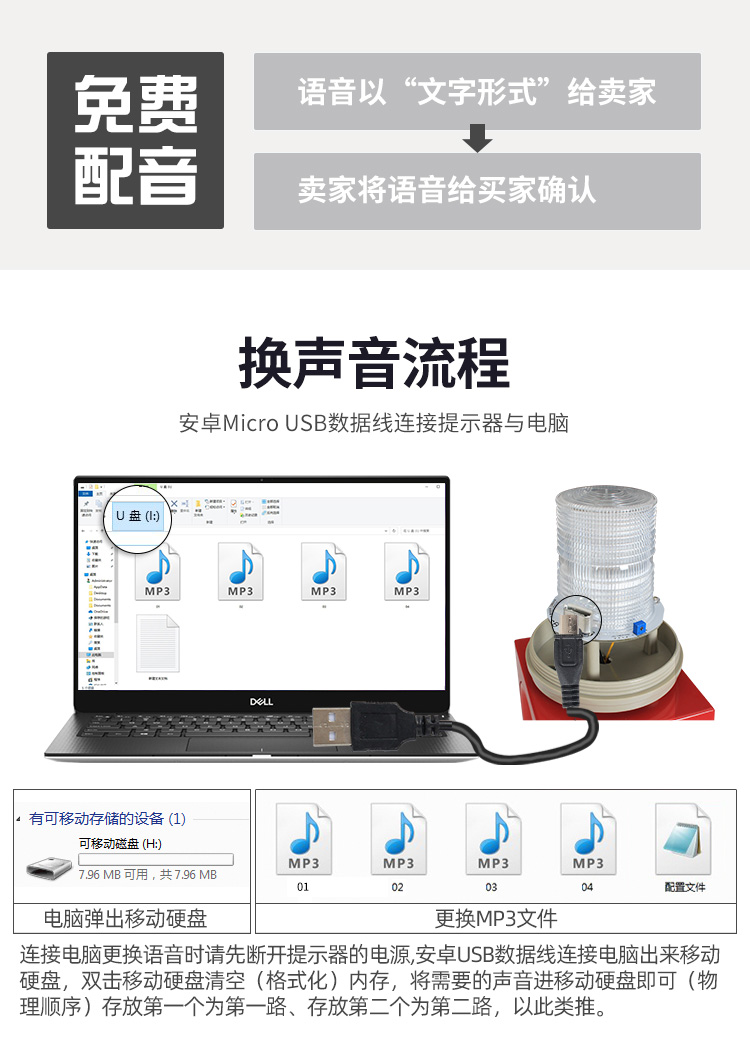 红外人体感应语音提醒器警灯语音双重智能提醒